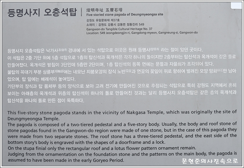 강원도 유형문화재 제37호 등명사지오층석탑