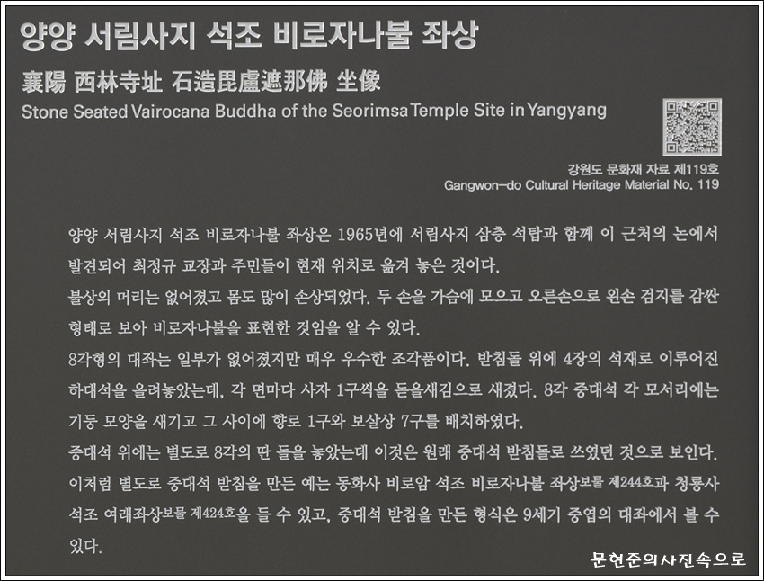강원도 문화재자료 제119호 양양서림사지석조비로자나불좌상