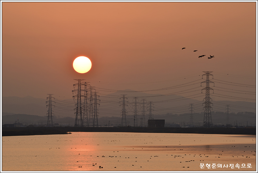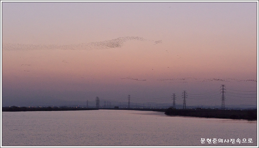 충남 아산 선장면 일몰 과 가창오리떼날다.