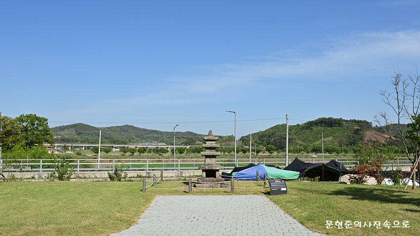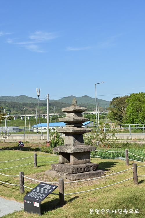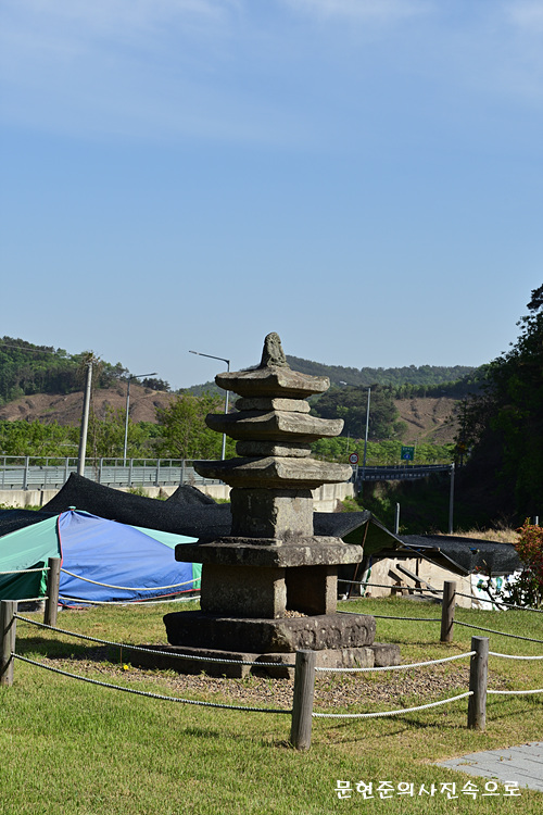 지석리에 있는 3층 석탑으로, 원래 마을 뒷산에 있었는데 일제시대 때 일본인들이 가져가려고 이곳까지 운반해 왔다가 주민들의 반발로 가져가지 못하여 이곳에 자리잡게 되었다.
