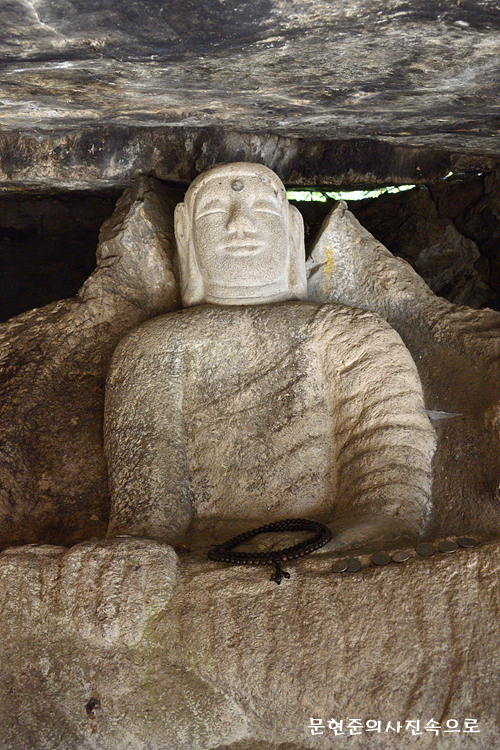 높이 164㎝의 불상은 관음전 뒤편에 있는 자연동굴 속 암벽에 조각되어 있다. 머리를 잃어버려서 시멘트로 새로 만들었는데 신체에 비해 좀 크게 느껴진다. 깊게 새겨진 옷은 왼쪽 어깨를 감싸고 있으며, 오른손은 무릎 위에 내려 땅을 향하고 왼손은 왼발 위에 올려 놓았다.