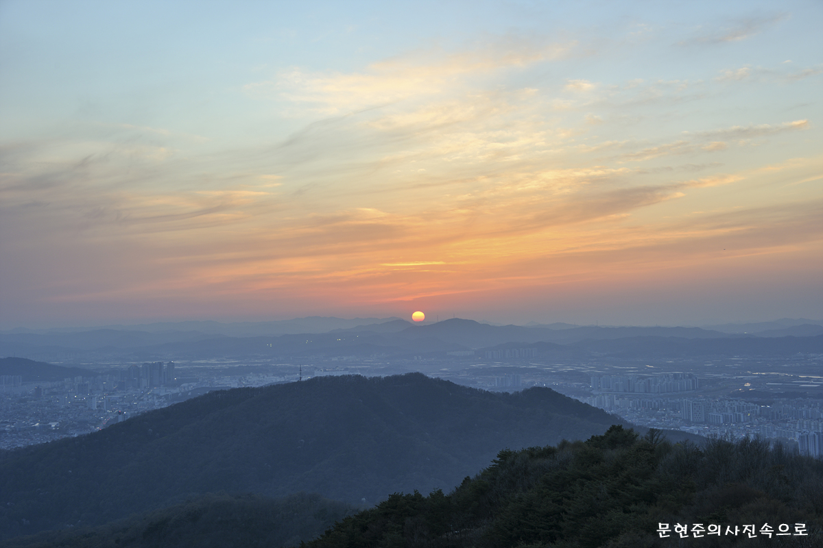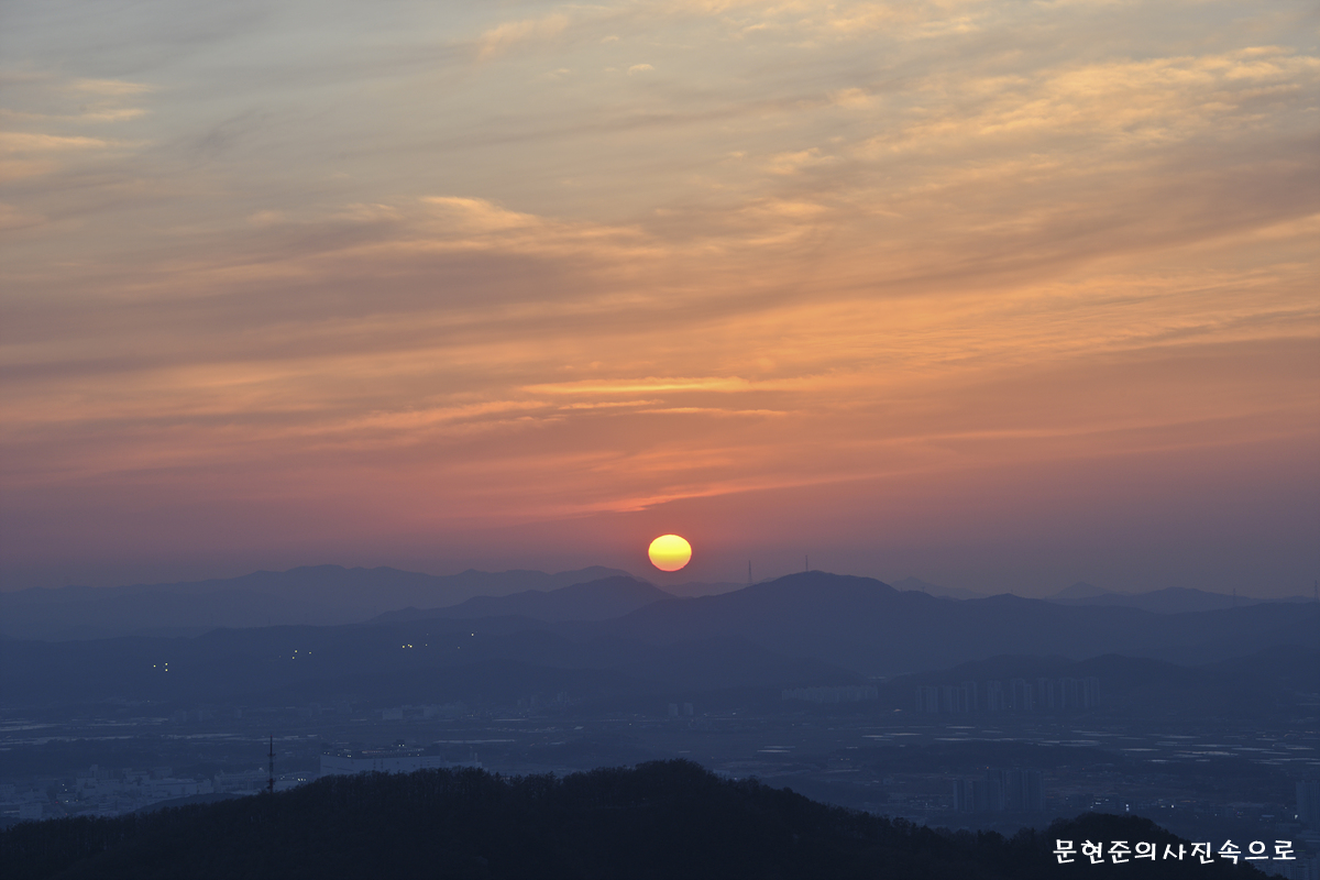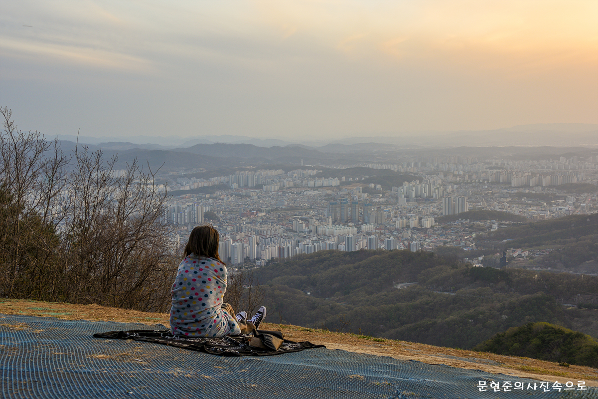 충북 청주 것대산활공장에서 바라본 일몰 및 청주야경