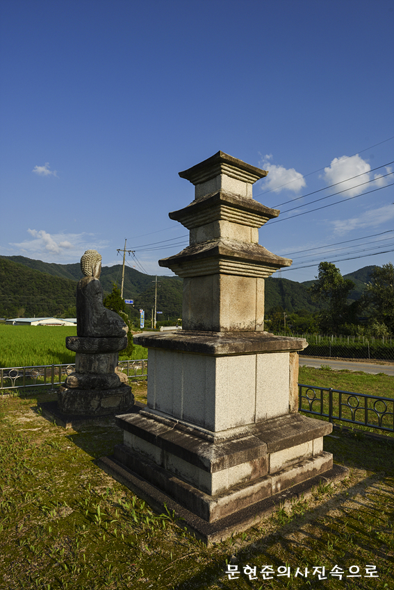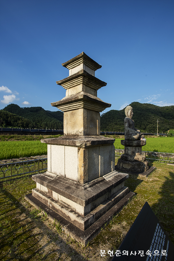 성덕사의 옛터에 석불좌상과 함께 남아있는 3층 석탑이다.
