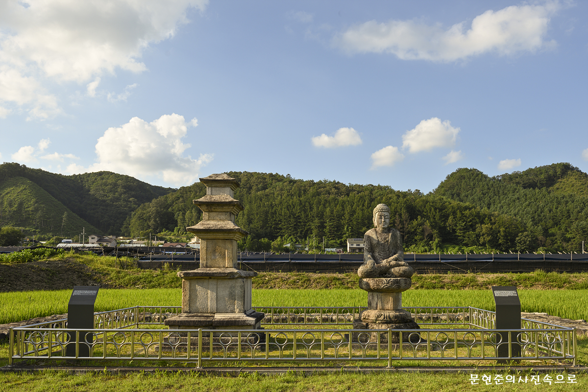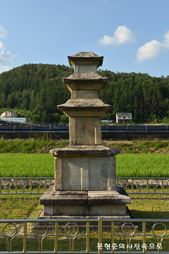 성덕사의 옛터에 석불좌상과 함께 남아있는 3층 석탑이다.