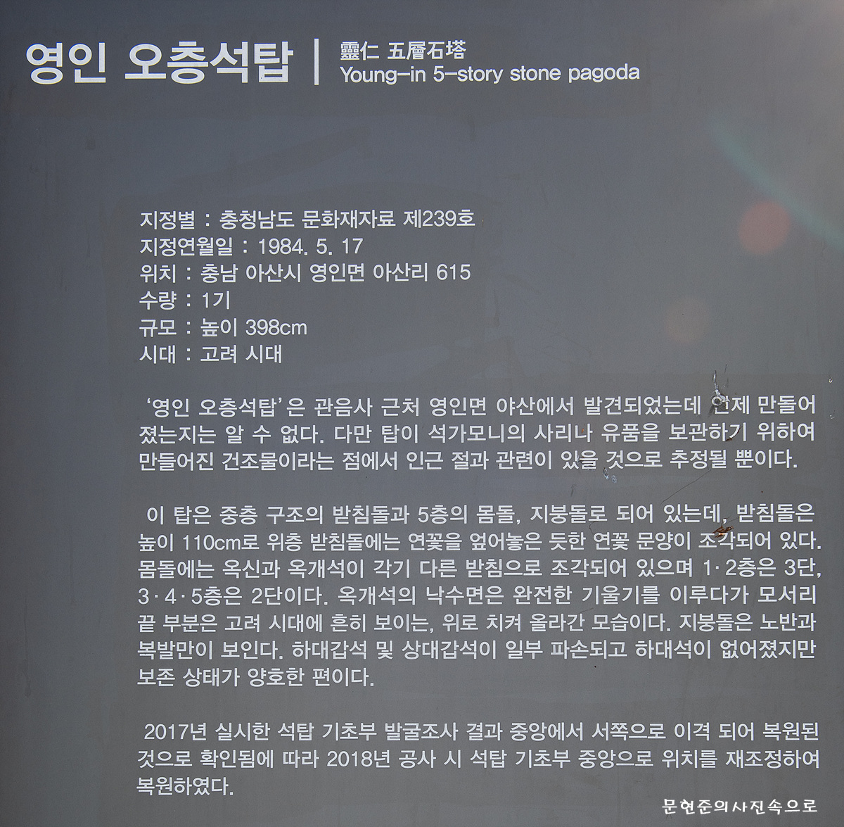 2021.08.24 - [한국의석탑/충청남도] - 충남 아산 영인오층석탑
