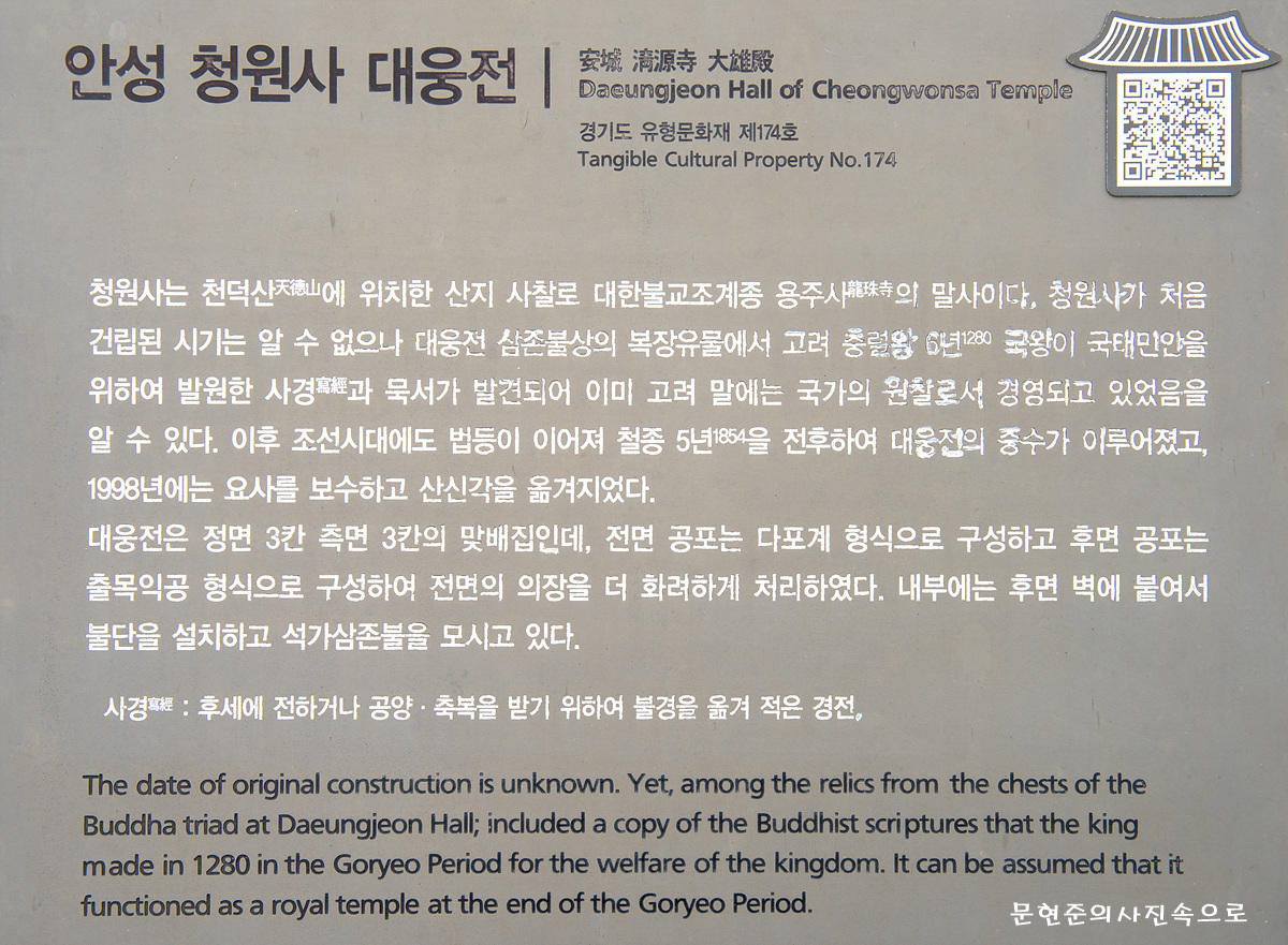 경기도 유형문화재 안성청원사대웅전