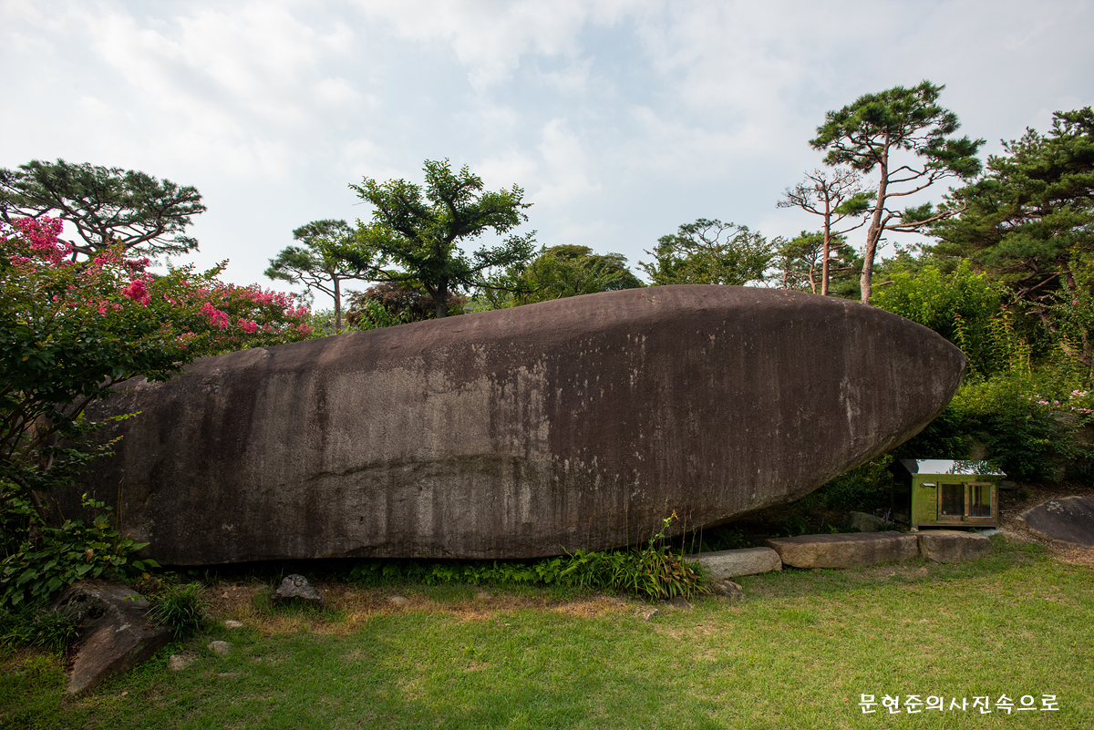 형태가 배모양 같다 하여 '배바위' 또는 고래모양이라 하여 '고래바위' 또는 베틀에 딸린 북모양이라 하여 '북바위'등으로 불리우며 동쪽으로 머리를 두었다.