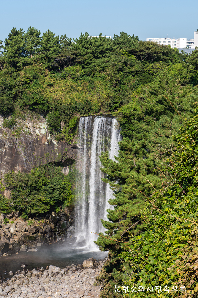 주상절리가 잘 발달한 해안 절벽에 수직으로 떨어지는 20여m의 물줄기가 제주 남쪽 바다의 푸르른 해안 절경과 어우러져 장관을 이루어 천지연폭포, 천제연폭포 등과 함께 제주도를 대표하는 폭포로 널리 알려져 있다.