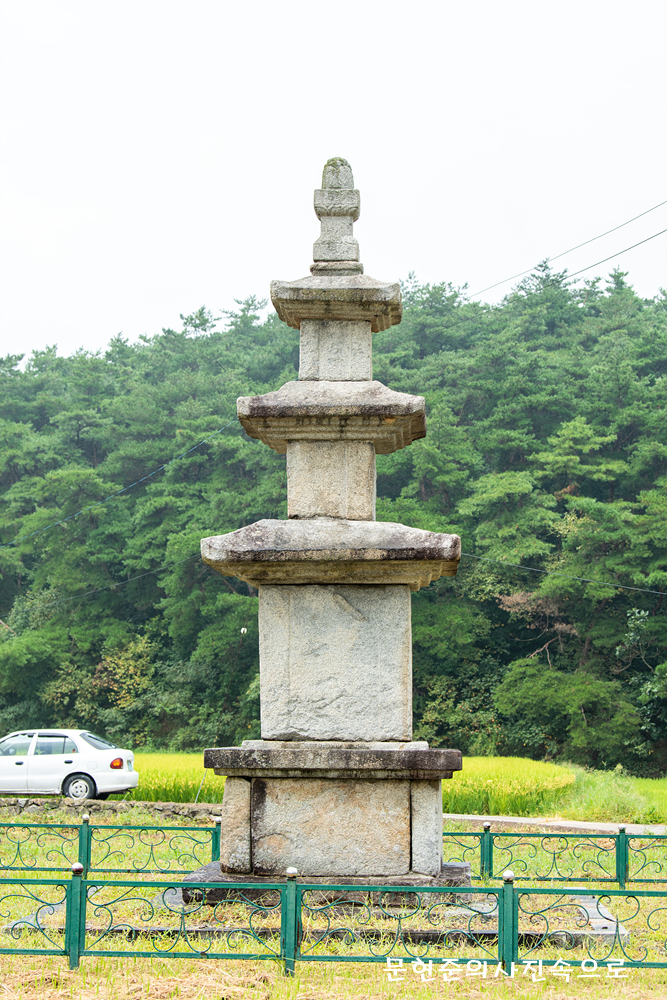 이 탑은 인근의 무성리석불입상과 함께 미륵사에 전해지는 것으로,현재는 절 앞 논위에 높게 돌은 쌓아 터를 마련하고 그위에 탑을 세워 놓았다.