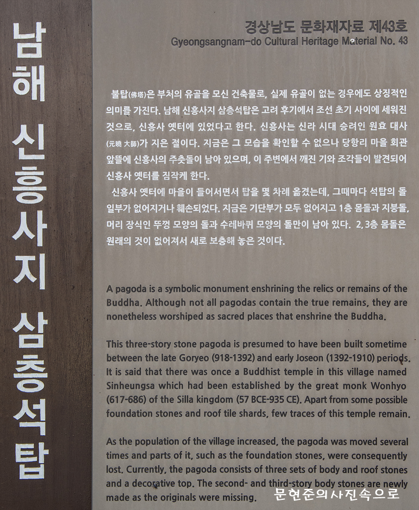 경상남도 문화유산자료 남해 신흥사지 삼층석탑