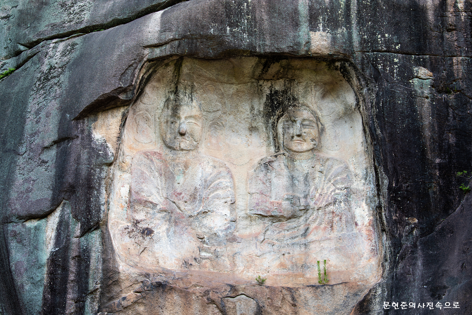높이가 12m나 되는 큰 암석을 우묵하게 파고, 두 불상을 나란히 배치한 마애불로서 우리나라에서는 드문 예이다.