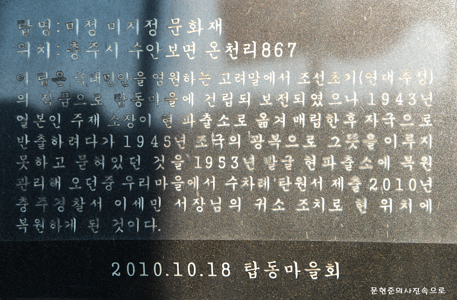 충청북도 충주시 수안보면 온천리 867 에 있는 고려 후기 석탑 으로