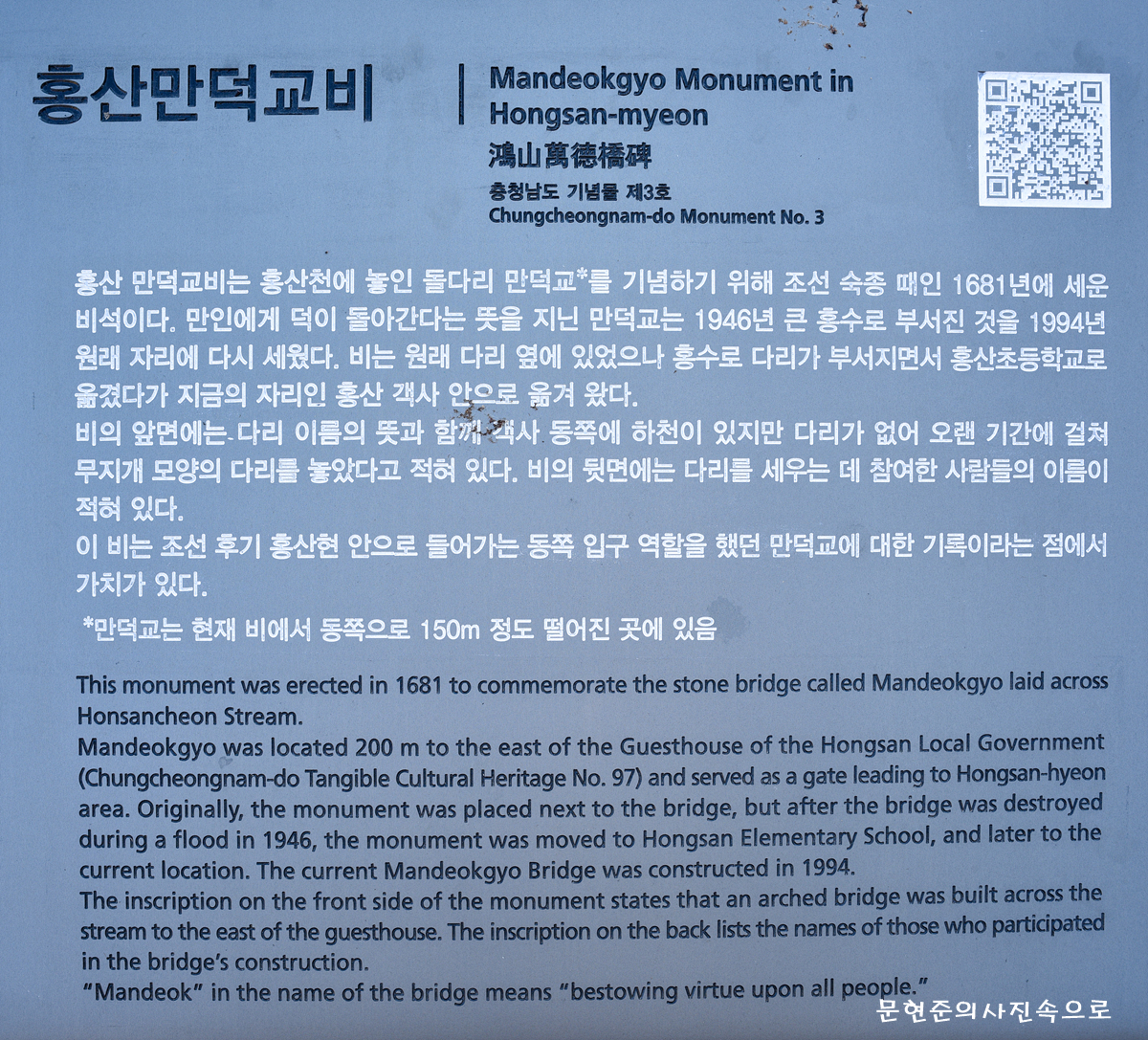 홍산만덕교비 鴻山萬德橋碑 충청남도 기념물 제3호