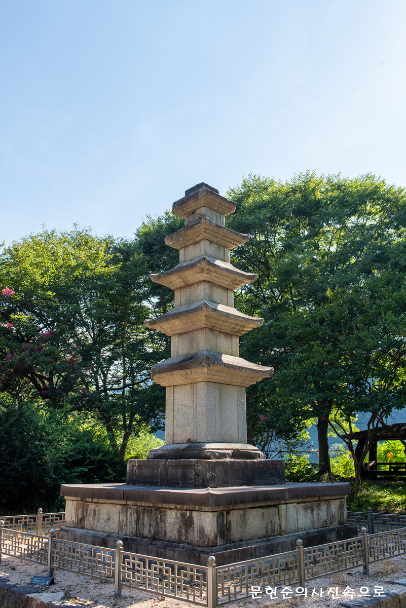탑신은 1층 몸돌을 제외하고는 몸돌과 지붕돌이 각각 하나의 돌로 이루어져 있다. 지붕돌받침은 각각 세 단이고, 추녀 끝이 약간 들려 있어 고려 시대 석탑의 특징을 보여 준다. 네 귀퉁이에는 연꽃무늬 조각이 있고 그 가운데에는 처마 끝에 다는 종인 풍탁(風鐸)을 달았던 작은 구멍이 남아 있다.