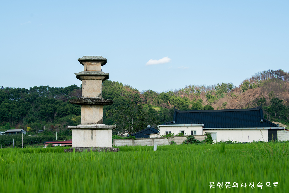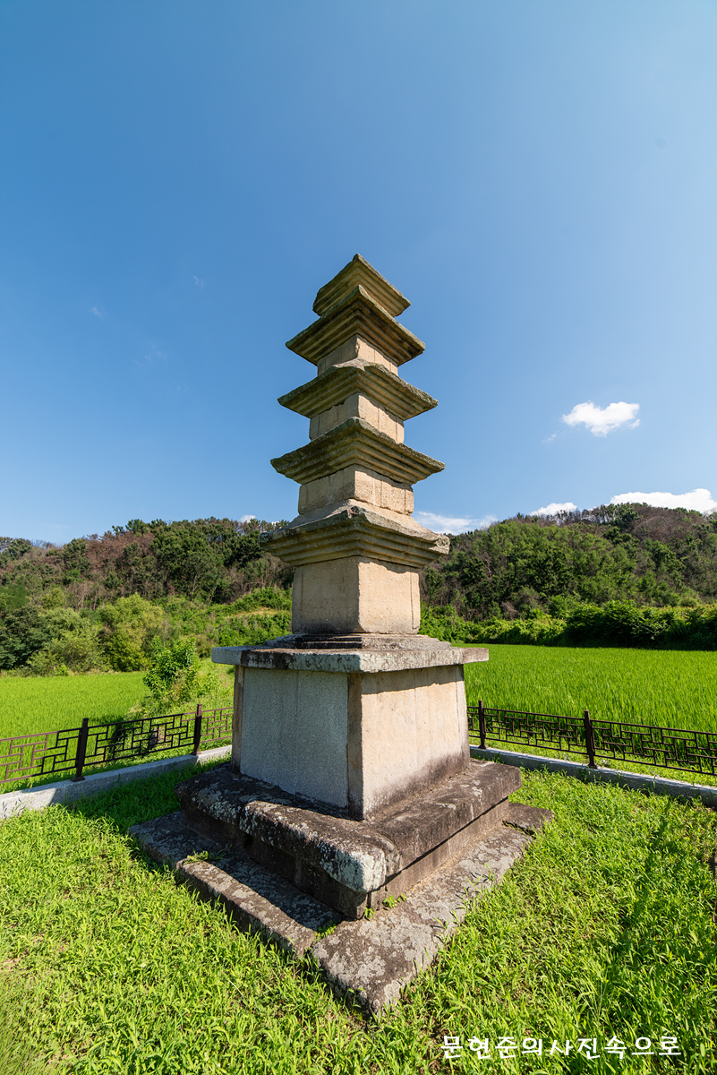 마을 앞 논 가운데 자리하고 있으며, 탑이 속해있던 절의 역사는 전하는 것이 없다. 전체적인 모습은 2층 기단(基壇) 위에 3층의 탑신(塔身)을 올린 형태이다.