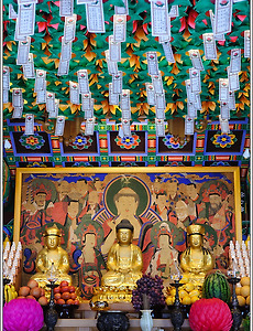 한국의문화유산/충청남도210 [충남]서산 보원사지 종 목 : 보물 제102호명 칭 : 서산 보원사지 석조 (瑞山 普願寺址 石槽)분 류 : 유적건조물 / 종교신앙/ 불교/ 기타수 량 : 1개지정일 : 1963.01.21소재지 : 충남 서산시 운산면 용현리 150시 대 : 통일신라소유자 : 국유관리자 : 서산시 서산 보원사터에 위치한 석조이다. 보원사는 고란사라고도 하며 사찰에 대한 역사는 전혀 알려지지 않고 있으나 1959년 국보 제84호인 서산 용현리 마애여래삼존상이 발견되면서 큰 관심을 끌었던 곳이다. 석조는 승려들이 물을 담아 쓰던 돌그릇으로, 원형·팔각형·장방형 등이 있다. 이 석조는 화강석의 통돌을 파서 만든 직사각형 모양으로 통일신라시대의 일반적 형식을 보인다. 규모가 거대하며 표면에 아무 장식이 없어 장중해 보인다. 내부 각 면에도 조각한 흔.. 2013. 8. 15. [충남]천안 삼태리마애여래입상 종 목 : 보물 제407호명 칭 : 천안 삼태리 마애여래입상 (天安 三台里 磨崖如來立像)분 류 : 유물 / 불교조각/ 석조/ 불상수 량 : 1좌지정일 : 1964.09.03소재지 : 충남 천안시 동남구 풍세면 휴양림길 70 (삼태리)시 대 : 고려시대소유자 : 국유관리자 : 천안시 충청남도 천안시 풍세면 태학산의 해선암 뒷산 기슭 큰 바위에 높이 7.1m나 되는 거대한 불상이 조각되어 있으며 마애불 윗부분의 바위에는 건물이 있었던 흔적이 남아 있다. 얼굴 부분은 도드라지게 조각하고 신체는 선을 이용하여 표현하였는데, 이는 고려 후기 마애불의 일반적인 양식으로 이 작품이 만들어진 시기를 짐작할 수 있게 해준다. 민머리 위에는 둥근 상투 모양의 머리묶음이 큼직하게 솟아 있다. 양감있는 넓적한 얼굴은 가는 눈.. 2013. 8. 14. [충남]서산 보원사지 강댕이 미륵불 충남 서산 보원사지 입구에 있는 미륵불2012.12.16문현준 2013. 8. 1. [충남]홍성 홍주읍성 조양문야경 종 목 : 사적 제231호명 칭 : 홍성 홍주읍성 (洪城 洪州邑城)분 류 : 유적건조물 / 정치국방/ 성/ 성지면 적 : 46,961㎡지정일 : 1972.10.14소재지 : 충남 홍성군 홍성읍 오관리 200-2시 대 : 삼국시대소유자 : 국유,사유관리자 : 홍성군자 료 : 문화재청 충남 홍성군에 있는 성으로, 길이 약 1,772m의 성벽 중 약 800m의 돌로 쌓은 성벽의 일부분이 남아있다. 처음 지어진 연대는 확실히 알 수 없으며, 『세종실록지리지』에 홍주성의 둘레와 여름과 겨울에도 마르지 않는 샘이 하나 있다는 기록만 있을 뿐이다. 왜구의 침입이 예상되는 고을의 읍성을 새로운 격식에 맞추어 쌓게 되었던 조선 세종 때에 처음 쌓기 시작하여 문종 1년(1451)에 새로 고쳐 쌓았다. 당시 성의 규모는 둘.. 2013. 7. 3. [충남]공주 마곡사 명부전 종 목 : 충청남도 문화재자료 제64호 명 칭 : 마곡사명부전 (麻谷寺冥府殿) 분 류 : 유적건조물 / 종교신앙/ 불교/ 불전 수 량 : 1동 지정일 : 1984.05.17 소재지 : 충남 공주시 사곡면 운암리 567 시 대 : 일제강점기 소유자 : 마곡사 관리자 : 마곡사 문 의 : 충청남도 공주시 문화재관리소 041-840-2814 마곡사는 백제 무왕 41년(640)에 자장율사가 세웠다고 전한다. 절 경내에는 명부전을 비롯하여 대웅전, 영산전, 대광보전, 홍성루 등 많은 건물이 남아 있다. 명부전은 지장보살을 중심으로 좌우에 명부시왕상을 모시고 있어 지장전·시왕전이라고도 한다. 지장보살은 모든 인간을 교화시키는 역할을 맡았으며, 시왕은 염라대왕을 비롯한 10명의 지옥 심판관이다. 자 료 : 문화재청 .. 2013. 5. 3. [충남]예산 삽교석조보살입상 종 목 : 보물 제508호 명 칭 : 예산 삽교읍 석조보살입상 (禮山 揷橋邑 石造菩薩立像) 분 류 : 유물 / 불교조각/ 석조/ 보살상 수 량 : 1기 지정일 : 1969.06.21 소재지 : 충남 예산군 삽교읍 신리 산16 시 대 : 고려시대 소유자 : 국유 관리자 : 예산군 2개의 돌을 이어서 조각한 석불로 충청남도 예산군 수암산 중턱에 위치하고 있다. 머리에는 두건같은 관(冠)을 쓰고 있고, 그 위에 6각으로 된 갓 모양의 넙적한 돌을 올려 놓았다. 어깨의 윤곽은 아래로 내려가면서 조금씩 넓어지지만 양감이 전혀없이 밋밋하여 마치 돌기둥 같다. 왼손은 몸에 붙인채 아래로 내리고 있고, 오른손은 가슴까지 올려 돌지팡이같은 것을 잡고 있는데 양 발 사이까지 길게 내려오고 있다. 거구이면서 불륨없는 돌기둥.. 2012. 9. 12. [충남]아산 인취사석조아미타삼존불상 종 목 : 충청남도 문화재자료 제395호 명 칭 : 아산 인취사 석조 아미타삼존불상 분 류 : 유물 / 불교조각/ 석조/ 불상 수 량 : 3기 지정일 : 2005.10.31 소재지 : 충남 아산시 신창면 읍내리 84 시 대 : 조선시대 소유자 : 대한불교조계종인취사 관리자 : 대한불교조계종인취사 문 의 : 충청남도 아산시 문화예술과 041-540-2069 중앙의 아미타불을 중심으로 좌에는 관음보살이 우에는 지장보살이 자리하고 있는 삼존불입니다. 중앙의 아미타불좌상은 선정인으로서 결과부좌하였으며, 육계가 크고 나발이 선명하고 오른팔에 편삼을 걸친 변형 통견식 법의로서 아미타불의 전형적인 수인과는 다르게 표현되어 있습니다. 좌측의 관음보살상은 본존과 같은 착의법을 하였으며, 보관정면에 아미타불좌상의 화불을 .. 2012. 8. 15. [충남]예산 김정희선생필적암각문 종 목 : 충청남도 기념물 제15