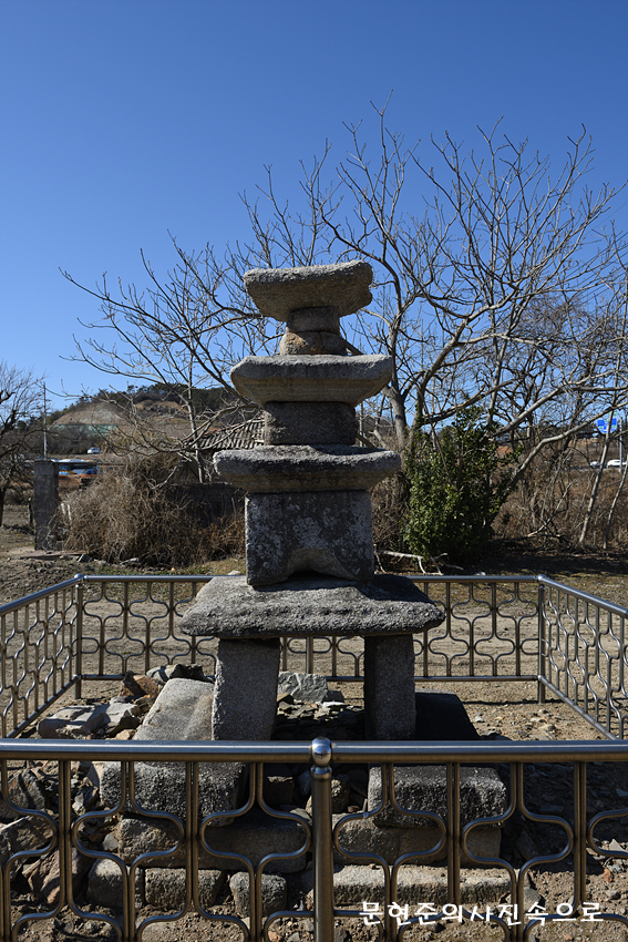 이 석탑은 현재 3층까지 잔존하나 구전에 의하면 원래 7층이었다고 하며, 석탑의 지대석은 흙에 묻혀 있어 전체가 확실히 보이지 않으나 동쪽 변은 보이고, 긴 장대석을 2단으로 쌓아 마치 2중 기단의 석탑처럼 보인다. 석탑은 마모가 심하며 각 부재가 제 위치에 있지 않아 원형을 파악하기 어렵지만, 잔존하는 지대석, 기단부와 탑신, 옥개석 등으로 볼 때 고려시대에 제작된 것으로 추정된다.