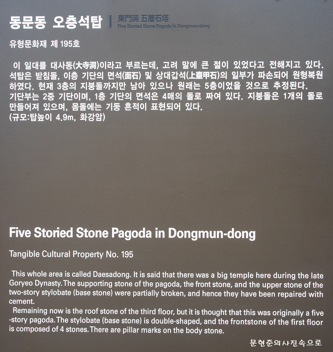동문동에 소재한 오층석탑과 당간지주가 위치한 이곳은 고려시대에 큰절이 있었다고 해서 지금도 이곳을 대사동(大寺洞)이라고 부른다.