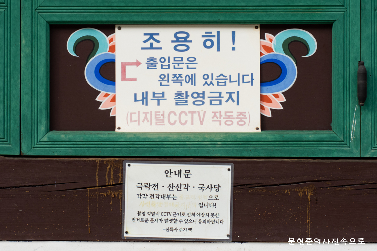 건물의 바깥쪽 벽에는 여래상을 그려 장엄하게 하였으며, 내부에는 천장 좌우에 문수보살과 보현보살의 불화가 있다. 중앙에는 용 등으로 장식하여 내부를 세련되고 우아하게 하였다.