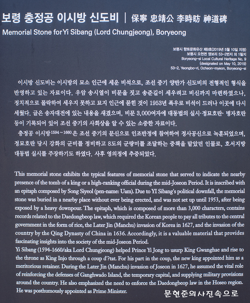 보령 충정공 이시방 신도비 보령시 향토문화유산 제9호 (2019.05.10 지정)