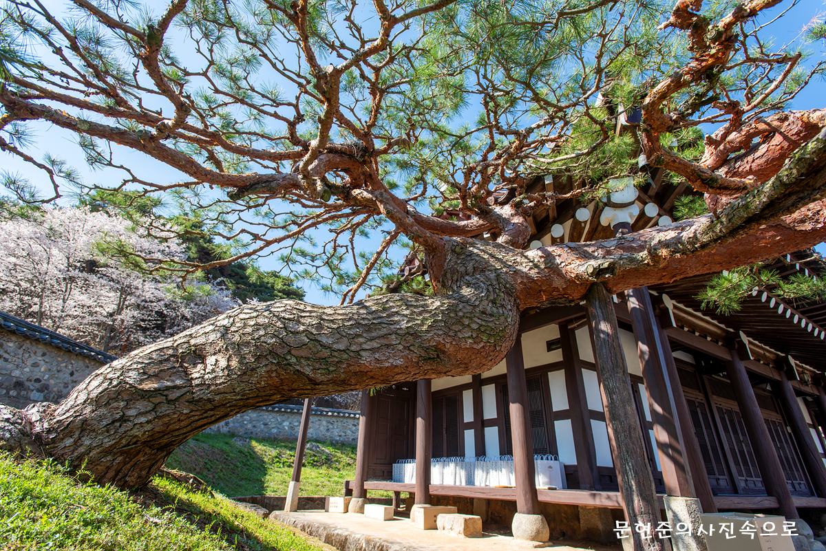 일명 효자솔은 소나무가 재실의 용마루를 넘지않고 옆으로만 뻗는 모습이 맟피 머리숙여 절하고 있는 모습과 같다고 하여 효자솔이 이라고 한다.