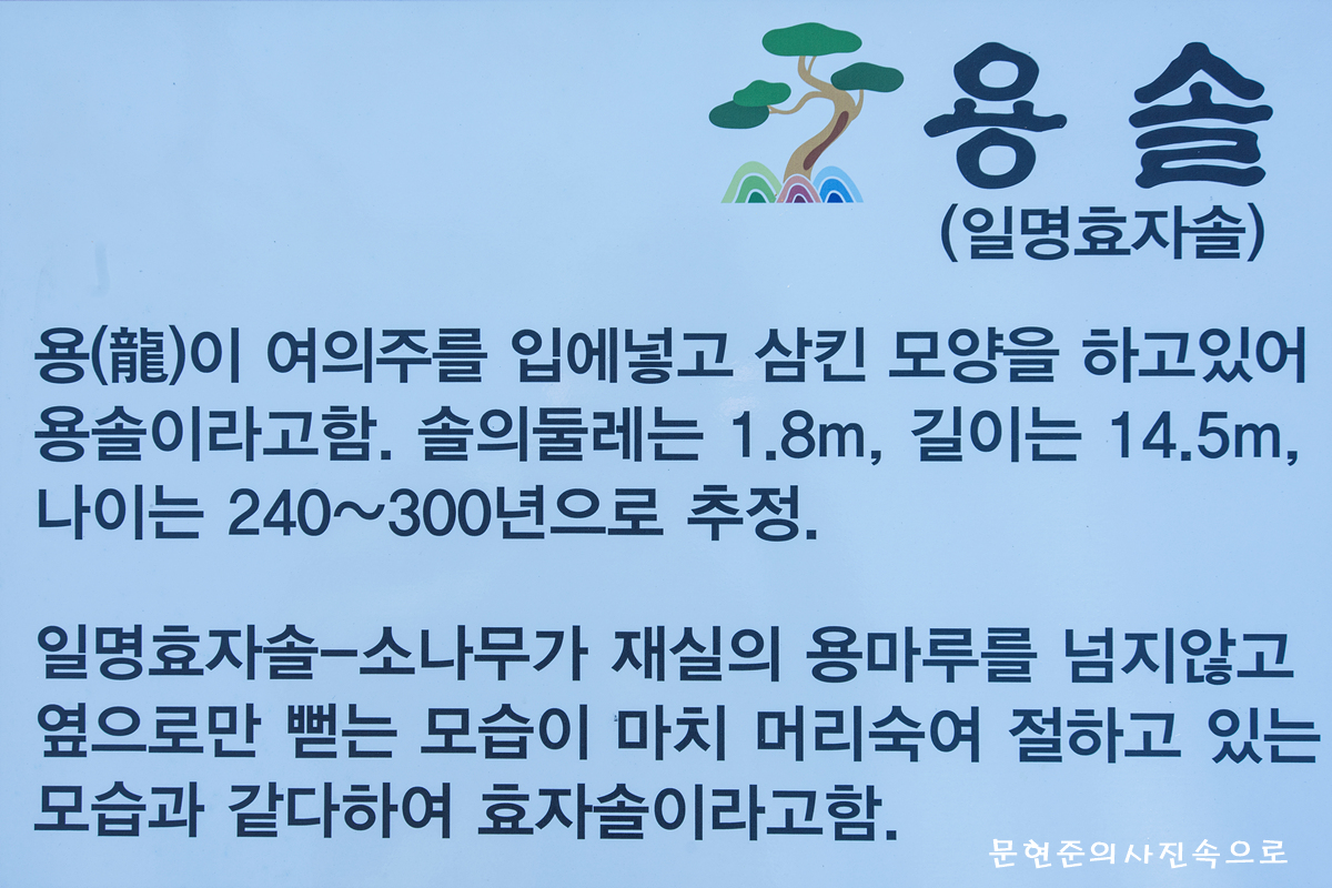 용솔은 용이 여의주를 입에넣고 삼킨 모양을 하고 있어 용솔이라고 하며, 둘레는 1.8m 길이는 14.5m 나이는 240~300년으로 추정하고 있다.