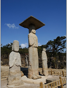 석불79 [경북]예천 동본리석조여래입상 종 목 : 보물 제427호 명 칭 : 예천 동본리 석조여래입상 (醴泉 東本里 石造如來立像) 분 류 : 유물 / 불교조각/ 석조/ 불상 수 량 : 1구 지정일 : 1965.07.16 소재지 : 경북 예천군 예천읍 동본리 474-4 시 대 : 통일신라 소유자 : 국유 관리자 : 예천군 경상북도 예천군 예천읍 동본동 3층석탑과 함께 전해오는 통일신라 후기의 불상으로 하나의 돌에 새겨진 전체 높이 3.46m의 거대한 석조불상이다. 머리에는 작은 소라 모양의 머리칼을 붙여 놓았으며, 정수리 부근에는 상투 모양의 머리(육계)가 큼직하게 표현되었다. 원만한 얼굴에는 길다란 눈, 짧은 코, 적당한 입이 적절하게 표현되어 부드러운 곡선의 얼굴과 함께 자비롭고 온화한 미소를 실감나게 나타내고 있다. 큰 얼굴에 비하여 작아.. 2012. 12. 13. [울산]울주 간월사지 석조여래좌상 종 목 : 보물 제370호 명 칭 : 울주 간월사지 석조여래좌상 (蔚州 澗月寺址 石造如來坐像) 분 류 : 유물 / 불교조각/ 석조/ 불상 수 량 : 1구 지정일 : 1963.01.21 소재지 : 울산 울주군 상북면 등억온천4길 15 (등억리) 시 대 : 신라 소유자 : 국유 관리자 : 울주군 경상남도 울산 울주군 상북면 등억리의 간월사지에 있는 석조여래좌상으로 약간의 파손은 있지만 비교적 잘 보관되어 있다. 머리에는 작은 소라 모양의 머리칼을 붙여 놓았으며 그 위로 상투 모양의 큼직한 머리(육계)가 자리잡고 있다. 얼굴은 둥글고 원만하며 단정한 입과 긴 눈, 짧은 귀 등의 표현에서 온화하고 인간적인 느낌을 준다. 어깨는 좁아지고, 몸은 양감이 줄어든 모습이다. 양 어깨에 걸쳐 입은 옷은 옷은 얇으며 U자.. 2012. 10. 25. [충북]괴산 각연사 석조비로자나불좌상 종 목 : 보물 제433호 명 칭 : 괴산 각연사 석조비로자나불좌상 (槐山 覺淵寺 石造毘盧遮那佛坐像) 분 류 : 유물 / 불교조각/ 석조/ 불상 수 량 : 1구 지정일 : 1966.02.28 소재지 : 충북 괴산군 칠성면 각연길 451, 각연사 (태성리) 시 대 : 통일신라 소유자 : 각연사 관리자 : 각연사 불상이 앉아있는 대좌(臺座)와 몸 전체에서 나오는 빛을 형상화한 광배(光背)가 모두 갖춰진 완전한 형태의 불상으로, 진리의 세계를 두루 통솔한다는 의미를 지닌 비로자나불을 표현한 것이다. 머리에는 작은 소라 모양의 머리칼을 붙여 놓았으며, 그 위의 상투 모양 머리(육계)는 펑퍼짐하여 구분하기 어렵다. 오른쪽 어깨를 드러내고 왼쪽 어깨에만 걸쳐 입은 옷에는 옷주름이 간략하게 표현되었는데, 특히 다리부.. 2012. 9. 15. [충남]천안 만일사 석불좌상 종 목 : 충청남도 문화재자료 제256호 명 칭 : 만일사석불좌상 (晩日寺石佛坐像) 분 류 : 유물 / 불교조각/ 석조/ 불상 수 량 : 면적 1구 지정일 : 1984.05.17 소재지 : 충남 천안시 성거읍 천흥리50-2 시 대 : 소유자 : 만일사 관리자 : 만일사 문 의 : 충청남도 천안시 문화관광담당관실 041-521-2034 충청남도 천안시 성거읍에 있는 만일사(晩日寺)는 고려 태조 4년(921)에 도선이 지은 사찰로, 석가모니불과 5층 석탑을 만들어 놓았다고 하나 신빙성은 없다. 높이 164㎝의 불상은 관음전 뒤편에 있는 자연동굴 속 암벽에 조각되어 있다. 머리를 잃어버려서 시멘트로 새로 만들었는데 신체에 비해 좀 크게 느껴진다. 깊게 새겨진 옷은 왼쪽 어깨를 감싸고 있으며, 오른손은 무릎 위.. 2012. 7. 8. [충남]아산 온천리석불 종 목 : 충청남도 문화재자료 제227호 명 칭 : 온천리석불 (溫泉里石佛) 분 류 : 유물 / 불교조각/ 석조/ 불상 수 량 : 면적 1구 지정일 : 1984.05.17 소재지 : 충남 아산시 온천동 229 시 대 : 소유자 : 관광호텔 관리자 : 관광호텔 문 의 : 충청남도 아산시 문화예술과 041-540-2069 온천리석불에 대한 설명입니다.충청남도 아산시 온양관광호텔에 있는 것으로 1927년 신창면에 파손되어 흩어져 있던 것을 모아서 옮긴 것이다. 전체 높이는 84㎝이며 둥근 얼굴에 양 어깨를 감싼 옷을 입고 있다. 두 손은 무언가를 들어 마주 쥐고 가슴 위까지 올리고 있어 스님의 모습으로 보이기도 한다. 전반적인 불상의 형태로 보아 보아 조선 후기의 작품으로 추정된다. 자 료 : 문화재청 충청남.. 2012. 7. 4. [대전]유성 진잠 성북리 석조보살입상 종 목 : 대전광역시 유형문화재 제5호 명 칭 : 진잠 성북리 석조보살입상 (鎭岑城北里石造菩薩立像) 분 류 : 유물 / 불교조각/ 석조/ 보살상 수 량 : 1구 지정일 : 1989.03.18 소재지 : 대전 유성구 성북동 산11 시 대 : 고려시대 소유자 : 봉소사 관리자 : 봉소사 문 의 : 대전광역시 유성구 문화공보실 042-611-2078 성북동 산뜸 마을 동북쪽 산중턱에 있는 봉소사 안에 서 있는 석조보살상이다. 신체에 비하여 너무 큰 머리에는 높은 보관(寶冠)을 쓰고 있는데, 보관의 양 옆에는 장신구를 매달았던 듯한 구멍이 있으며, 귀에는 귀걸이를 길게 내려 뜨리고 화려한 장엄구를 달았다. 천의(天衣)는 왼쪽 어깨를 감싸 흘러내리고 있으며, 오른손은 곧게 아래로 내려 손바닥이 앞을 향하도록 하고.. 2012. 5. 3. [충남]당진 안국사지석조여래삼존불상 종 목 : 보물 제100호 명 칭 : 당진 안국사지 석조여래삼존입상 (唐津 安國寺址 石造如來三尊立像) 분 류 : 유물 / 불교조각/ 석조/ 불상 수 량 : 3구 지정일 : 1963.01.21 소재지 : 충